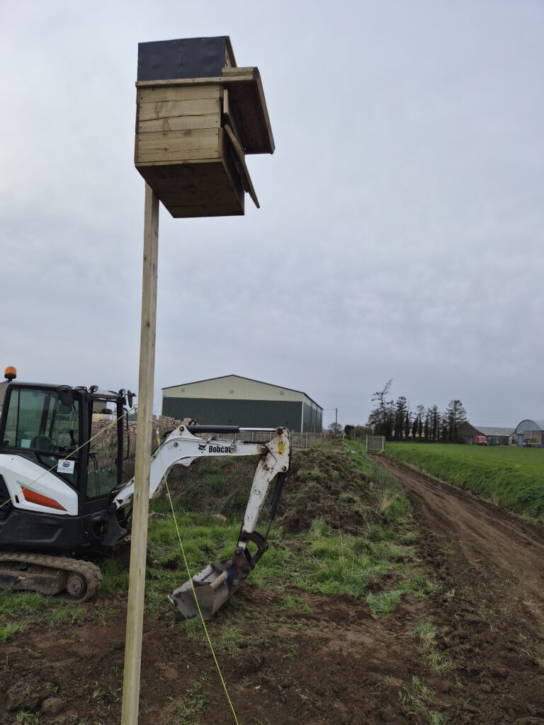 In addition to the wildflower area, the team has installed a barn owl box positioned to face the nearby dyke. This initiative is designed to attract barn owls, supporting local wildlife while contributing to natural pest control in the surrounding environment.